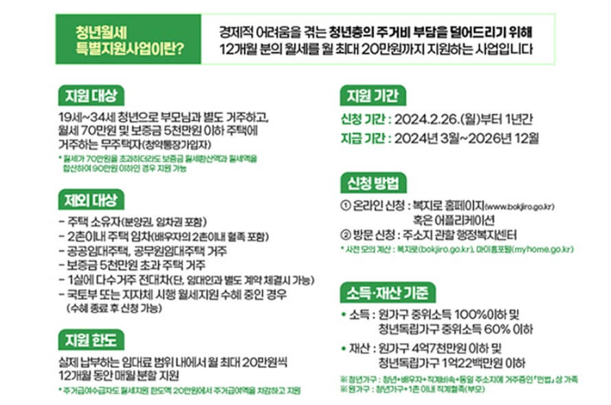 | 청년가구 | 중위소득 60% 이하, 재산가액 1억 2,200만 원 이하 |
